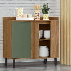 Balcão De Canto Reto Módulo De Cozinha 1 Porta - Toscana Freijó/jade Balcão de Canto Reto Módulo de Cozinha 1 Porta - Toscana Freijó/Jade - Otimize cada espaço com a linha Toscana. Otimize cada canto da sua cozinha com o Balcão de Canto Reto da linha Toscana. Feito 100% em MDF, ele combina um armário fechado com prateleiras de acesso rápido, solucionando espaços difíceis com inteligência. Conta com detalhes premium, como dobradiças com amortecimento para um fechamento suave e pés com regulagem para um nivelamento perfeito. A solução ideal para finalizar seu projeto com a qualidade e o suporte que você só encontra na Dkadi Decor.