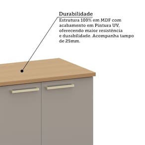 Características: Estrutura: MDF 15mm Tampo: MDF 25mm Quantidade de Portas: 2 Tipo de Dobradiças: Metálicas com Slow Motion Quantidade de Gavetas: 0 Tipo de Puxador: Alça em PS Tipo de Pés: Plástico com regulagem de altura Sistema de Montagem: Cavilhas, Parafusos e Minifix Garantia: 3 meses