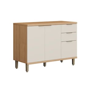 O(a) Balcão de Cozinha 120 Cm Bless 2 Portas 3 Gavetas 100% Mdf Jequitiba/Off White Fosco - Linea Brasil é produzido em 100% MDF na escala de brilho Impressão UV, e possui um grau de dificuldade de montagem: Médio.