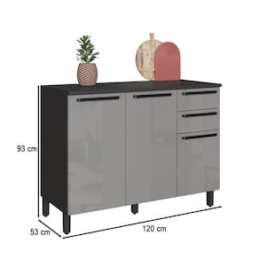 O(a) Balcão de Cozinha 120 Cm Diamante 2 Portas 3 Gavetas Cinza/Titanio - Indékes é produzido em MDP na escala de brilho Acetinado, e possui um grau de dificuldade de montagem: Médio.