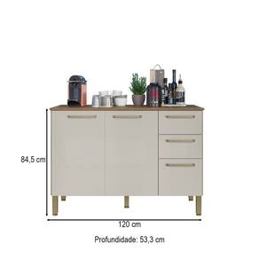 O(a) Balcão de Cozinha 120 Cm Mad Versalhes 3 Portas 2 Gavetas Freijó/Soft - Kits Paraná é produzido em MDP na escala de brilho Brilhante, Brilho e Fosca com Textura, e possui um grau de dificuldade de montagem: Médio.
