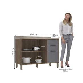 Balcão de Cozinha 120cm 2 Portas e 3 Gavetas com Tampo Aspen Luciane Móveis