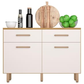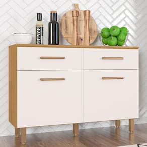 Com design simétrico, conta com duas portas e duas gavetas alinhadas. As dobradiças e corrediças metálicas proporcionam uma abertura suave, enquanto os puxadores delicados conferem um toque de sofisticação e combinam com diversos estilos de decoração.