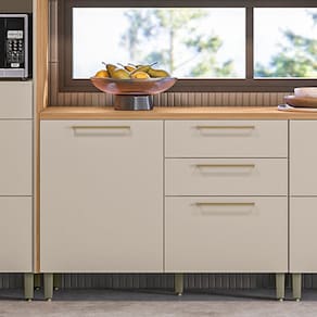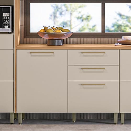 "Um balcão de 1,20m feito completamente em MDF, oferecendo gavetas com corrediças telescópicas e porta com dobradiças amortecidas, combinando durabilidade, funcionalidade e um fechamento suave para a cozinha." Pés plástico com sapata regulável, Puxador metálico, Gaveta com corrediça telescópica, Gaveta com corrediça telescópica. Suporta Granito: Sim Acabamento da Prateleira: Pintura UV Escala de Brilho da Prateleira: Fosco Acabamento da Gaveta: Pintura UV Escala de Brilho da Gaveta: Fosco Material do Puxador da Gaveta: Alumínio Acabamento da Porta: Pintura UV Escala de Brilho da Porta: Fosco Material do Puxador da Porta: Alumínio Produto Montado: Sim Acabamento: Pintura UV Acabamento dos Pés: Plástico Acompanha Rodapé Decorativo: Não Acompanha Tampo: Sim Altura dos Pés: 14,5 cm Altura Máxima dos Pés: 14.5000 Ambiente Principal: Cozinha Balcão Acompanha Pia: Não Balcão Suporta Pia: Sim Cesto para Frutas: Não codigo_ean: 7900288131362 Complexidade da Montagem: Média: pode ser montado por mais de uma pessoa e/ou necessite de maior conhecimento para montagem Cor: Jequitibá/Off White Fosco Cor do Produto: Jequitibá/Off White Fosco Cor Interna: OFF WHITE Escala de Brilho: Fosco Espessura do Material da Estrutura: 15 mm Gaveta com Chave: Não Itens Inclusos: 1 Balcão 1.2m, Kit Ferragens e Manual de Montagem Linha ou Coleção: Atena Manual de Montagem e Instalação: https://product-hub-prd.madeiramadeira.com.br/665833857/documents/7c859e9f-4b56-4420-bf37-6636aa228b8b2870754623117454149803749.pdf Marca: Linea Brasil Material da Dobradiça/Corrediça da Porta: Metálica Material da Gaveta: MDF Material da Porta: MDF Material da Prateleira: MDF Material do Tampo: MDF Material dos Pés: Plástico Medida do Tampo (L x C x E): 120cmx52cmx3cm modular: Sim Necessita Montagem: Sim O Balcão Acompanha Pia: Não Origem do Produto: Nacional Pés Reguláveis: Sim Peso: 55,2 kg Peso Máximo por Gaveta: 5 kg Peso Máximo por Prateleira: 20 kg Possui Pés: 05 Possui Portas: Sim Possui recorte para Cooktop: Não Recomendações de Uso, Manutenção e Limpeza: Pano Seco Sapatas Niveladoras: Sim Sistema de Montagem: Parafusos, Cavilhas e Minifix Suporta Até (kg): 40 kg Tipo de Base (pés): Pés Tipo de Corrediça da Gaveta: Telescópica Tipo de Dobradiça/Corrediça da Porta: Soft close Tipo de Porta: Bater Tipo de Puxador da Gaveta: Externo Tipo de Puxador da Porta: Externo