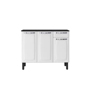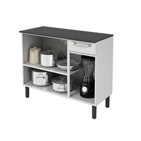 Design Elegante: Cor Branco com brilho e tampo em acabamento Granito Ônix.