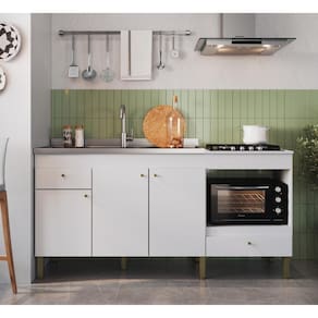 O balcão multiuso BM06 da Decibal Móveis permite otimizar sua cozinha, com espaço para pia, cooktop, forno e ainda muito espaço de armazenamento. É o balcão ideal para você que precisa organizar seus utensílios, em um espaço de 1,80m de largura.