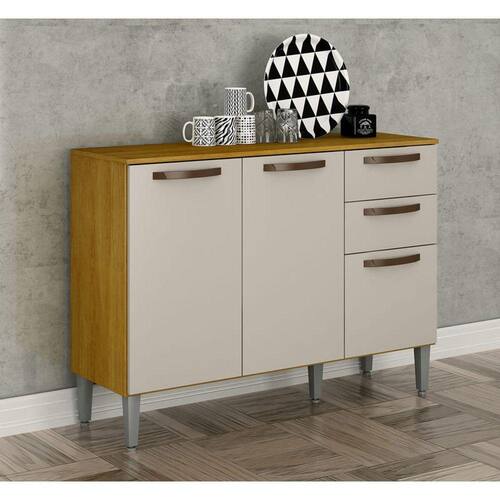 Balcão de Cozinha 3 Portas 2 Gavetas - Maísa-Cinamomo/Off White - CHF Móveis