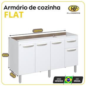 A linha Flat para cozinha é a combinação de beleza e praticidade. O armário vai todo desmontado, com um projeto pensado em facilitar a vida do usuário, sendo fácil de montar e transportar.