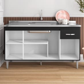 O Balcão possui um perfeito design moderno, compartimento com amplo espaço interno para acomodar utensílios, panelas, eletrodomésticos pequenos e muito mais.