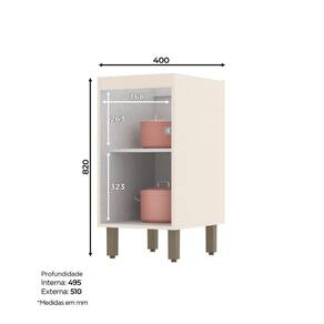 FICHA TECNICA: Acabamento: Na versao Duna/Cristal e Pintura UV texturizada e na versao Off White e Pintura UV Texturizada Cor Interna: Trama Escala de Brilho: Na versao Duna/Cristal e fosco e na versao Off White e brilho Tipo Porta: Bater Material do Puxador Porta: Aluminio Material da Dobradica: Metalica 35mm Qtd. Prateleiras: 1 Und. Peso Maximo por Prateleira: A prateleira suporta ate 8 Kg, a carga deve ser distribuida uniformemente. Qtd. Pes: 4 Und. Material Pes/Rodape: ABS Pes Regulaveis: Nao Balcao suporta Pedra (Marmore ou Granito): Sim, porem para instalacao sera necessario a aquisicao de maos francesas (Nao Inclusas) para segurar o tampo. Possui vidro: Nao Material Principal: MDF Material do Fundo: MDF Pode ser montado suspenso: Nao Produto Suporte ate (Kg): 15 Kg Peso Produto Montado (Kg): 13 Kg Medidas Montado (A x L x P): 82 x 40 x 51 Cm