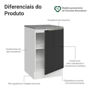 O Balcão de 50 cm da linha Lux é compacto e funcional, ideal para manter a cozinha mais organizada no dia a dia. Oferece um ótimo espaço interno para armazenar utensílios, mantimentos ou panelas.