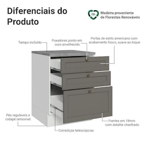 O Balcão de Cozinha com 3 Gavetas da Linha Vik da Madesa é a escolha ideal para quem deseja mais organização na sua cozinha. Com três gavetas amplas, sendo a última mais profunda ideal para guardar panelas ou itens maiores. Todas as gavetas contam com corrediças telescópicas, que oferecem abertura total e muito mais facilidade no dia a dia.