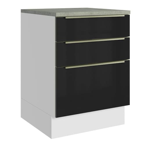 - Um Balcão de 60 cm de largura com três gavetas (Acompanha tampo)