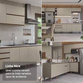 A linha Nice chega em uma nova versão no tom crema, uma tonalidade suave que transmite aconchego e leveza. Outro diferencial está nos puxadores em bronze metalizado e pés em bronze sólido, que acrescentam um toque contemporâneo.