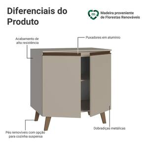 Produzido com materiais de qualidade, o balcão conta com dobradiças metálicas nas portas e puxadores em perfil de alumínio, discretos e resistentes, o acabamento de alta resistência mantém a beleza do móvel por muito mais tempo.
