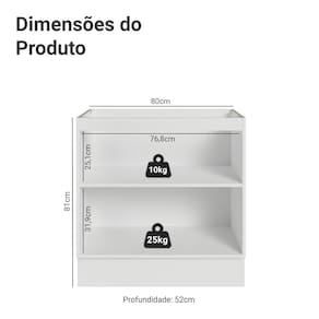 - Um Balcão de 80 cm de largura com duas portas (Não acompanha tampo)