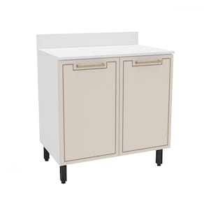O(a) Balcão de Cozinha 80 Cm Amara 2 Portas Branco/Creme - Politorno é produzido em MDF e MDP na escala de brilho Semi-Fosco, e possui um grau de dificuldade de montagem: Médio.