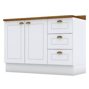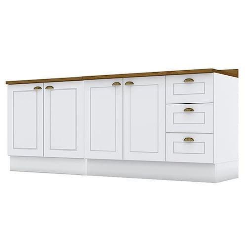 Balcão de Cozinha 120 cm Americana Branco com Tampo Nature Henn