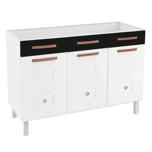 Balcão de Cozinha de Aço Triplo Telasul Mirage New S/ Tampo P/ Pia Branco/Preto