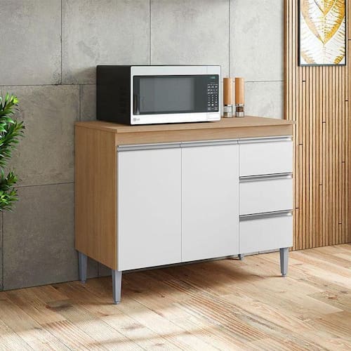 Balcão de Cozinha Ambiente Andréia com Tampo 100 cm Amêndoa Branco - AJL