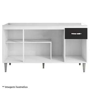 Está procurando móveis para sua cozinha? Apresentamos para você este belo balcão da linha Gabriela. Seu design funcional inclui tampo, quatro portas e uma gaveta equipada com corrediças metálicas, oferecendo um ótimo espaço interno para acomodar seus utensílios ou mantimentos. Os puxadores e pés em PVC completam o visual moderno, proporcionando mais estabilidade e resistência. Fabricado pela AJL, é desenvolvido em 100% MDP. Com 150cm de largura, combina qualidade e excelente acabamento, sendo uma escolha ideal para quem busca praticidade e organização para compor sua cozinha. Aproveite e garanta já o seu!