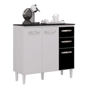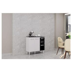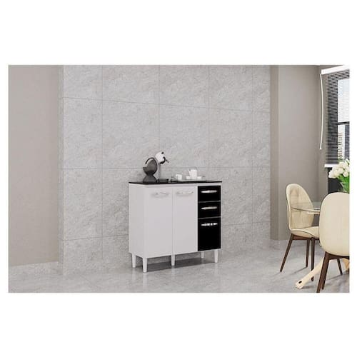 Balcão de Cozinha Ambiente Isadora Branco Preto - Poquema