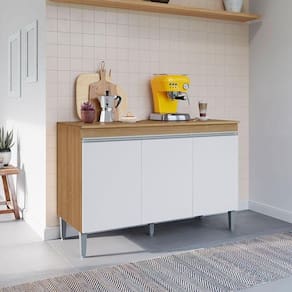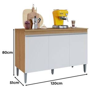 Balcão de Cozinha Ambiente Manu com Tampo 120cm Amêndoa Branco - AJL