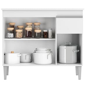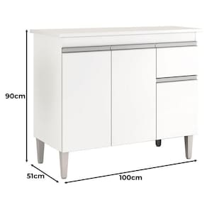 Balcão de Cozinha Ambiente Tatiane com Tampo 100cm Branco Brilho - AJL
