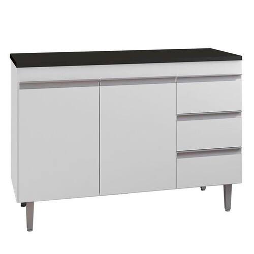 Balcão de Cozinha Andréia Branco com Tampo 100 cm Preto Fosco AJL