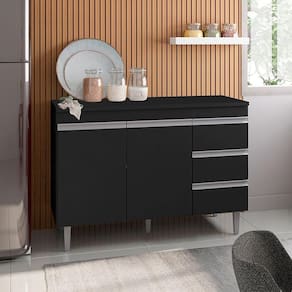Balcão de Cozinha Andréia com Tampo 120 cm Preto Fosco AJL