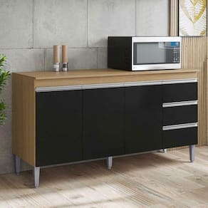 Balcão de Cozinha Andréia com Tampo 150 cm Amendoa Preto AJL