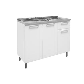 Balcão de Cozinha c/ Pia Múltipla c/ 3 Portas e 1 Gaveta Branco - Bertolini
