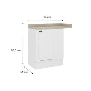 Balcão De Cozinha C/ Tampo Bella 2611 Canto Reto C/ 1 Porta 94cm Branco - Carraro