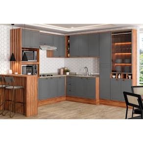 Material de Estrutura - MDP Espessura Material da Estrutura (mm) - Estrutura 15mm Estilo do Móvel - Moderno Tipo de Móvel - Balcão Canto Reto Tipo de Pintura - Pintura em UV (Ultravioleta) Tipo de Acabamento da Pintura - Fosca Tipo de Acabamento - Acabamento Interno em Linho Tipo dos Pés - ABS - Pés Reguláveis Quantidade de Pés - 5 Pés Vantagens Extras dos Moveis de Cozinha - Pode ser sozinho ou conjunto - Pode ser em projeto modulado - Vantagens dos Modulados Tipo de Porta - Portas de Bater