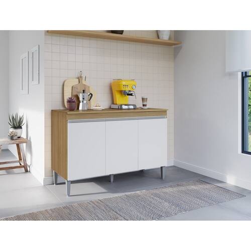 Características: Material da Estrutura: 100% MDP Acabamento: Pintura UV Escala de Brilho: Fosco Possui 3 portas Dobradiças em aço Puxadores embutidos Pés em PVC Design moderno