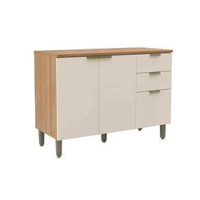 Balcão de Cozinha c/ Tampo Selena c/ 3 Porta e 2 Gavetas 120cm Jequitiba/Off White Fosco - Linea Marca: Linea