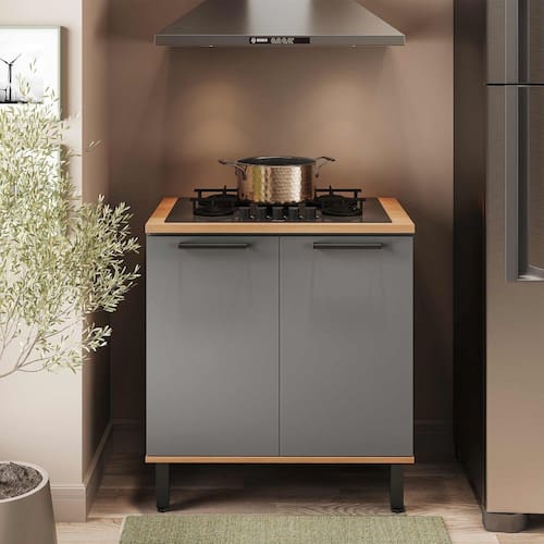 Balcão de Cozinha Castanha 800MM P/ Cooktop 5 Bocas C/ Tampo 2 Portas - Cinza/Freijó