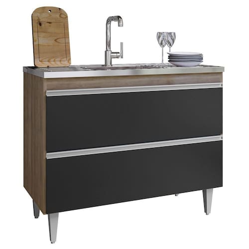 Renove sua casa com o Balcão de Cozinha Com Pia Inox 100cm Julia Z34 Freijó/Preto, da Mpozenato a solução ideal para quem busca otimizar o espaço e agregar praticidade ao ambiente.