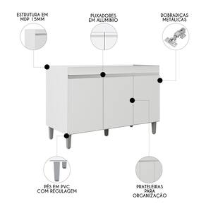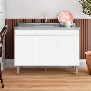 O Balcão de Cozinha Com Pia Inox 120 cm Manu Branco, da AJL Móveis é a beleza e praticidade para sua cozinha