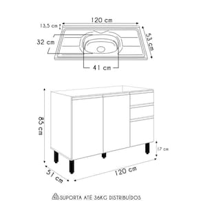 Conteúdo da Embalagem: 1 Balcão, 1 Pia Inox.