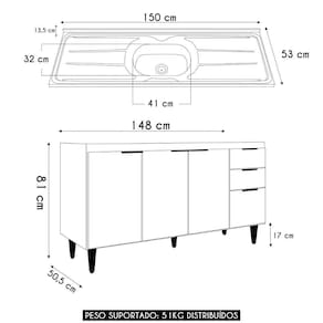 Compor a Cozinha com praticidade e estilo pode ser mais fácil do que você imagina. Com o Balcão de Cozinha Com Pia Inox 150cm Pérola Z34 Branco da Mpozenato, você transforma seu espaço, tornando-o mais moderno, funcional e perfeito para o seu dia a dia.