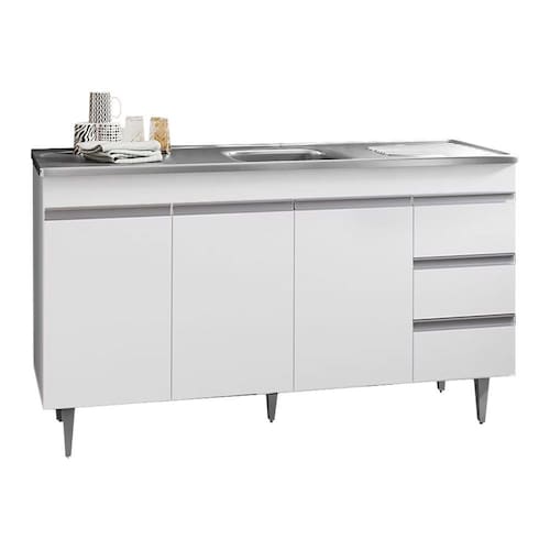 Se você está procurando um balcão compacto, prático e funcional para a sua cozinha o Balcão de Cozinha Com Pia Inox 160cm 3 Gavetas Andréia Branco, da AJL Móveis é perfeito!