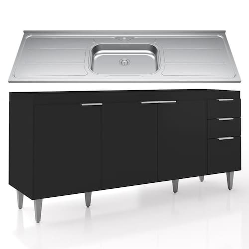 Compor a Cozinha com praticidade e estilo pode ser mais fácil do que você imagina. Com o Balcão de Cozinha Com Pia Inox 180cm Pérola Z34 Preto da Mpozenato, você transforma seu espaço, tornando-o mais moderno, funcional e perfeito para o seu dia a dia.