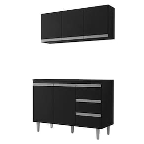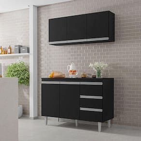 Balcão de Cozinha com Tampo 120 cm e Armário Aéreo Andréia Preto Fosco - AJL