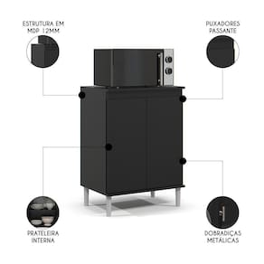 O design moderno, com tampo espaçoso é ideal para acomodar aparelhos domésticos, permitindo que você os tenha sempre à mão, prontos para uso. Nunca mais se preocupe em não ter lugar para instalar seu micro-ondas ou forno elétrico, pois com esse balcão com tampo, eles estarão sempre organizados e ao seu alcance. Além disso, o compartimento interno com uma prateleira é ideal para dispor potes de temperos, louças, mantimentos e o que mais for necessário. Dessa forma, sua cozinha ganhará funcionalidade e estilo com um único produto.