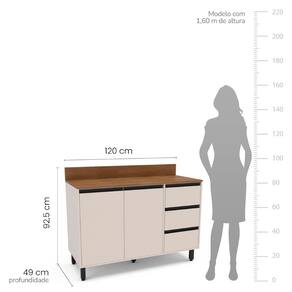 Características: Estrutura MDP Pintura UV 02 Portas com dobradiças metálicas 03 Gavetas com corrediças telescópicas Puxadores de Plástico Possui prateleira com amplo espaço 05 pés em plástico Peso suportado nas Prateleiras Estruturais: 10kg Peso suportado nas Prateleiras: 5kg Peso suportado nas Gavetas: 3kg *Acompanha Tampo*