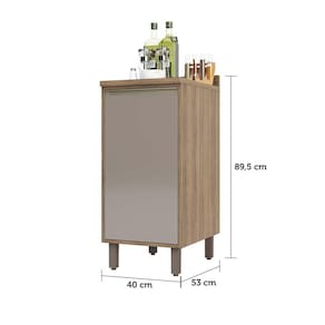 O Balcão de Cozinha com tampo 40 cm Mel foi desenvolvido aliando beleza e praticidade ao seu ambiente. Conta com 1 porta de abrir, 1 prateleira interna, puxador em alumínio gola na cor Inox e pés em PS -poliestireno- na cor champagne. Perfeito para sua cozinha.