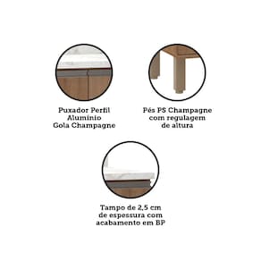 Tipo de Pés: Plástico PS Champagne com regulagem de altura