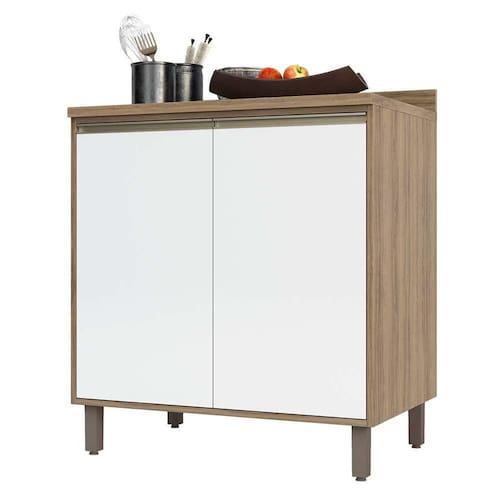 Balcão de Cozinha com Tampo 80 cm 2 Portas de abrir 1 Prateleira Mel Luciane Móveis. O Balcão de Cozinha com tampo 80 cm Mel foi desenvolvido aliando beleza e praticidade ao seu ambiente. Conta com 2 portas de abrir, 1 prateleira interna, puxador em alumínio gola na cor Inox e pés em PS -poliestireno- na cor champagne. Perfeito para sua cozinha.