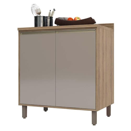Balcão de Cozinha com Tampo 80 cm 2 Portas de abrir 1 Prateleira Mel Luciane Móveis. O Balcão de Cozinha com tampo 80 cm Mel foi desenvolvido aliando beleza e praticidade ao seu ambiente. Conta com 2 portas de abrir, 1 prateleira interna, puxador em alumínio gola na cor Inox e pés em PS -poliestireno- na cor champagne. Perfeito para sua cozinha.